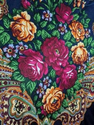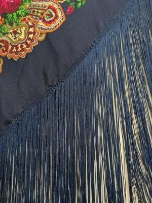 華やか〜!花柄プリント大判マントン ダークネイビー