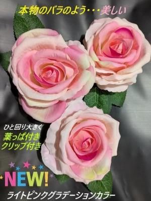 本物のバラのよう!Flamencoバラお持ちでしょうか?・・・葉付・クリップ付フローレス ライトピンク 約11cm